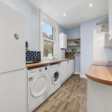The location is a real highlight. Denmark Hill Station is approximately a 10-minute walk, with Peckham Rye around 14 minutes away. Central Camberwell and Peckham are both close by, with the South London Gallery and St Giles Church just six minutes away. Excellent bus routes run from Camberwell Church Street at the foot of the road, providing easy access to Oval for the Northern Line and wider connections to Brixton, Herne Hill, Dulwich and New Cross.